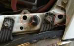 - Подсоедините концы «минусового» провода аккумулятора. Сначала к «минусу» аккумулятора машины-донора, а потом к любой зачищенной от ЛКП металлической поверхности (например, блоку двигателя) или к выступу на корпусе машины. Однако помните, что в момент запуска двигателя существует вероятность возникновения искры на «минусе». Поэтому соблюдайте пожарную безопасность, и «прикуривайте» на открытом воздухе или в хорошо проветриваемом помещении. Если вы не нашли подходящего выступа, то подсоедините провод к «минусу» АКБ реципиента.